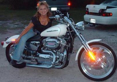 Sister's . I want to extend my thanks for this web-site .I am a woman approaching my 60's. and I have been *A Woman in Control*..rideing My Own Harley Davidson's since 1992.Sister ...Let me tell ya 20 years ago women riders weren't as Welcomed nor Respected in the Biker world as they are today.The Serenity I have found on some of my road trips is so unexplainable at times . My first Harley 1992 Sporty 883lx ,I rode that Harley Like My Ex was trying to catch up to me (hope some can relate) lol. My memories and Journey on my first I called her *Diamond*..We went 100k miles. and I rebuilt the top end of her by myself with the Bible in hand at 40k .in my own garage .Diamond stayed with me for 60k more miles of Serenity. She served me well.R.I.P.. I realized that my rideing skills had improved that lead me to beleive I was ready for a BIG GIRLS BIKE.Reminding myself that I am not such a Big Girl at 5"1-125 lbs.. I would have to choose wisely.I road tested quit a few befor I bought My 2003 FLSTCI.I named this one my White Lighter.As my White Lighter has become my New Serenity.I load the saddle bags with everything except the kitchen sink. and Road trip here I come . I stay gone for days. Searching the great wonders of the roads and waving to people as I go (the Princess wave) .One of the first Women I met directed me at first . and told me NEVER ride anywhere whithout your RED lipstick. Its the one way we can tell the differences between bikers men/ women.So If you see the White Lighter and the Red Lips with a Princess waving . .Yes you can laugh . Humor is part of the Serenity memories that get us thru life . Ride on Sisters . Wave like your the Princess and Always Smile LL&L* Love Loyality Laughter
