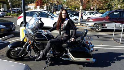 Dirty Girl. She fits me perfectly. It sits pretty high, for my long legs, but I shaved off the seat about 1 1/2 inches so that I could bend my knees more to push her up a slight incline when I park her facing outward in my garage. Custom seats are buffalo hyde and cow hyde to match her paint job. Tank was washed out, re- carb jetted. I've added floor boards, Vance & Hines pipes, messed with the baffles to make her louder, added crash bars and freeway pegs. I put a mount on the handle bars to hold a GPS. She is comfortable on long rides, too. Low miles when I got her because the previous owner stored her for 10 years. She is well taken care of; spoiled! We meld into each other when we ride. Join in and write your own page! It's easy to do. How? Simply click here to return to Honda. |