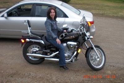 My First Bike. I bought this bike after I completed the MSC in May. I rode it for four months before buying my Honda VTX1300R (Will upload photo soon). This was a great first bike and the thing I miss the most about it is how much it roared like a big bike. It sounded louder than my present one. She was a cutie, that's for sure; turned a lot of heads, but too small for the highway, for me anyway.