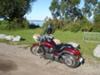 For my first bike, I wanted it to be new and shiney - mainly, I wanted a bike that I was able to put all the miles on it. So thanks to "credit", I went to the dealership and saw this baby. They had just put her together and on the show room floor the week prior. I'm not a red person but the deep color of this bike really appealed to me. I fell in love. I took an evening to think about it. I was scared to just dive in since I had yet to get my license. I did a little bit of riding 15 yrs ago on a Susuki 750 and the memory of that stayed with me all these years. So here I am, with my very own bike (have yet to name her). I'm 41 and finally brave enough to take on the open road. It's been almost 2 mths and I have put 1,500 miles on her. It is now fall in Alaska so I might have another month and half to ride before I have to put her away for the Winter. Very sad about that. But, until then, I'm going to have some fun!!!