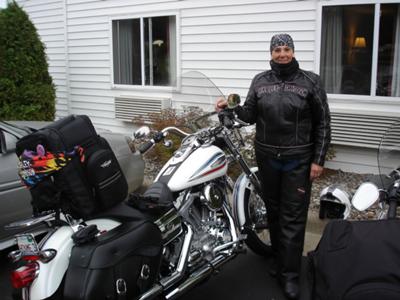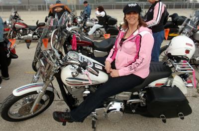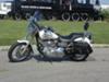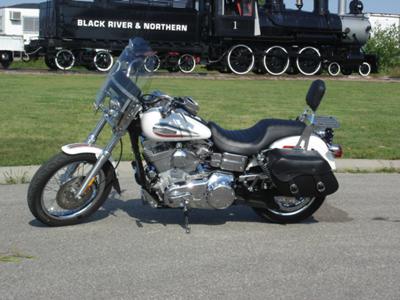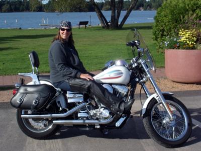 I rode a 2003 Sportster for 40,000 miles before realizing I needed/wanted a bigger bike. After going to Sturgis on the 883 in the higher elevations, we converted her to a 1200. But couple years later I just wanted a bigger bike and felt confident that I could handle more power. After all, I was riding my husbands Low Rider occasionally! I really wanted a Heritage Softail Classic. I was looking at the local dealer at a nice used one and called the husband over to see what he thought. He said, what about the Super Glide behind it? I hadn't even seen it and man, oh man am I ever glad I got it. First off it's a anniversary bike and they only made 3500 of them. It's Red, White and Blue..how much more American can you get! It's got 6 speeds(1st year models for 6 speeds)and 1450 cc's! It has mid-mount pegs which the Sportster had. The seat is one of the most comfortable that Harley makes. I'm 5'6" and my feet are flat on the ground. It's a Dyna frame. Unfortunately they don't make Low Riders anymore but they continue to make Super Glides. The reach is very comfortable. I have after market slip-on mufflers that have such a sweet rumble. Krome Werks. Detachable wind shield, bags and a detachable sissy bar make this a very comfortable bike to tour on. I added some heated hand grips(mid-west gets chilly in early spring/late fall)and also some highway pegs to stretch out. It has the Stage One kit installed and has some kick! I want to keep this bike as original as possible due to the fact it is a limited edition. I have put 37,000 miles on her so far. I have rode the new Harley Switchback and the Street Glide.....hmmmmm..I like the Street Glide better!