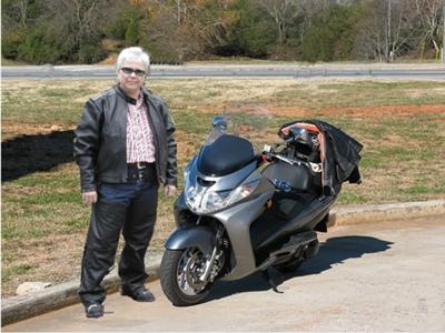 Actually I ride a "maxi scooter." She's an '06 Burgman 400 named "Lil' Windy" that I purchased new. I had originally intended to purchase a Suzuki Boulevard but the local Suzuki dealer thought I might like the scooter (I wanted to tour but have s spinal fusion making long rides in the saddle a bit of a nightmare). I told him to have it gassed up and sitting out front when I came to sign the paperwork on the Boulevard and I'd give it a test ride, not thinking that he'd let me test ride a new bike (I never rode the Boulevard). Needless to say, I fell in love with this scooter and the rest is history. I have added Kuryakan grips and a "bikers friend" bag when I'm on long rides. There is plenty of storage on-board, the ride is smooth and very comfortable, and she has plenty of power to haul this little heavy-weight around the Southern Appalachians.