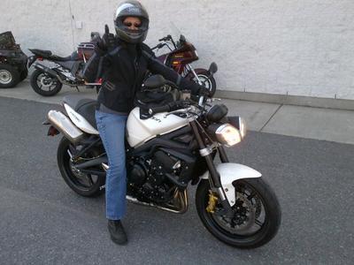 I road my husband's "dirt bike" for a season - a Kawasaki Super Sherpa but wanted something lower and more comfortable if I needed to go on the highway. After much research - considered ER6N, BMW 650 GS and Triumph Street Triple. Test drove both Beemer and Triumph and it was a tight decision but I just love the Triumph a little bit more. Have been riding it for a full season now with no regrets. |